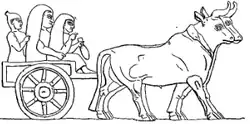 Une autre activité majeure pour laquelle la force de travail des animaux domestiques était mobilisée était le transport, les animaux étant alors utilisés pour tirer des chariots (trait) ou porter des biens (bât). Même si des ânes ont pu être attelés pour tirer des traîneaux (avant l'apparition de la roue vers la fin du IVe millénaire) et des chariots lourds à quatre roues, cette fonction est essentiellement réservée aux bovins, puis par la suite aux chevaux, l'introduction de ces derniers au IIe millénaire permettant la réalisation de chars plus légers et rapides à deux roues[79]. Les ânes sont essentiels pour le bât, avant le développement de l'élevage des chameaux et dromadaires au début du Ier millénaire par les tribus arabes, qui entraîne des changements dans les pratiques commerciales : grâce à sa grande capacité de résistance en environnement chaud et aride, il permet aux hommes de prendre des routes plus longues à travers les déserts. Pour les transports à longue distance, des caravanes sont organisées dès les époques les plus anciennes, et sont particulièrement bien connues pour le commerce des Assyriens en Anatolie centrale au début du IIe millénaire[80]. La monte des équidés reste en revanche peu développée durant la période du Proche-Orient ancien, ne connaissant un essor qu'à partir du Ier millénaire, et surtout pour la chasse et la guerre.