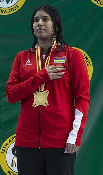 - ↑ « Championnats d’Afrique : Trois médailles d’argent et trois records nationaux pour Maurice », sur lemauricien.com, (consulté le )