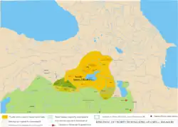 - Vers 850 av. J.-C. : règne de Arame, roi d’Urartu, en Arménie[1]. Salmanazar III mène une campagne sans lendemain contre le royaume d’Urartu, qui monte en puissance.