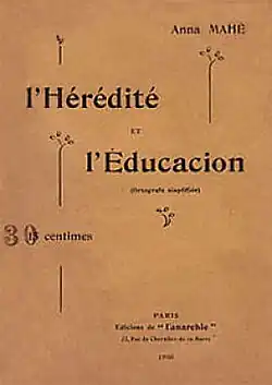 - « Contre « dressage » & « perroquetisme » scolaires, un enjeu méconnu de la pédagogie libertaire : la simplification de l’orthographe par Anna Mahé dans l’anarchie (1908) », sur archyves.net, .