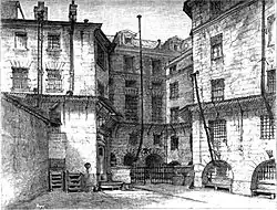 Anne-Louise, après avoir laissé ses enfants à la garde de Madame de Montmorin, se rend à Paris dans l’espoir de défendre son mari ; mais elle est arrêtée dès son arrivée. Le couple est transféré à la Conciergerie le [19],[6] tandis que Jean-Baptiste de Domangeville, le frère d’Anne-Louise, revenu clandestinement d’émigration pour régler quelques affaires, est enfermé à la prison des Carmes. Malade elle est transférée à l'hospice de l'Évêché devenu depuis peu une prison-hôpital.