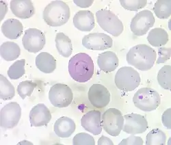 Il s'agit d'un inclusion cellulaire anormale en forme d'anneau, parfois tourné en huit[2] ayant l'aspect de fins filaments rouge-violet formant un anneau ou une boucle à l'intérieur d'une hématie le plus souvent polychromatophile (souvent de pair avec une ponctuation basophile), correspondant à des reliquats des microtubules du fuseau mitotique[3],[4]. Sauf situations exceptionnelles, leur nombre est toujours très faible, moins d'une hématie anormale pour 20 à 30 champs de microscope[3].