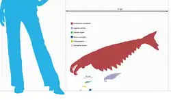![]() Taille d'Anomalocaris par comparaison avec un humain. |