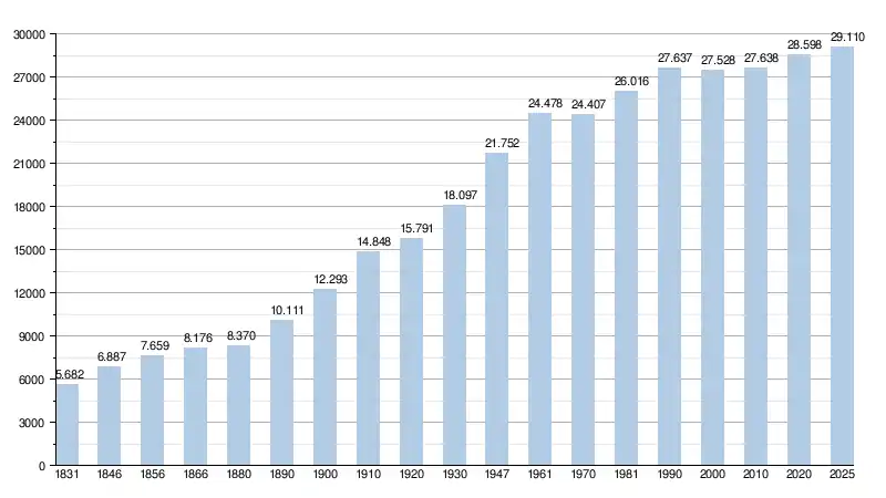Source: DGS , de 1831 à 1981=recensements population; à partir de 1990 = nombre d'habitants chaque 1 janvier[8]