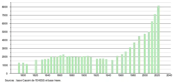 - ↑ Fiches Insee - Populations de référence de la commune pour les années 2006, 2007, 2008, 2009, 2010, 2011, 2012, 2013, 2014, 2015, 2016, 2017, 2018, 2019, 2020, 2021 et 2022.