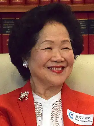 Anson Chan (chinois : 陳方安生; née le ) est une femme politique pro-démocrate et une fonctionnaire de Hong-Kong ayant exercé les fonctions de secrétaire en chef du gouvernement de Hong Kong sous mandat britannique.