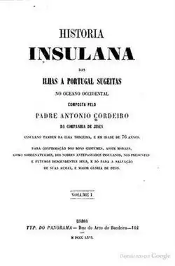 - Historia Insulana das Ilhas a Portugal Sujeitas no Oceano Ocidental. Lisboa Ocidental: Imprensa de António Pedroso Galvão, 1717.