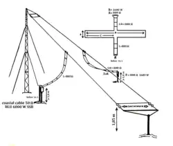 - Pour la version des stations fixes aéronautiques du contrôle du trafic aérien moyen courrier et long courrier le long des routes et des couloirs aériens des compagnies, l'antenne est utilisée pour recevoir et pour transmettre avec une puissance d'émission normalisée de 6 000 W dans la bande 2,85 MHz à 13,36 MHz ou dans la bande 3,4 MHz à 23,35 MHz.