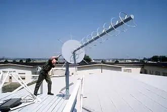 L'antenne hélice ressemble à un solénoïde étiré dont une extrémité est masquée par un écran métallique.