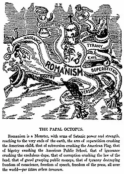 L'anticatholicisme remonte à la fondation des colonies de la Nouvelle-Angleterre, la lutte contre le « papisme » étant particulièrement marquée dans leur pays d'origine[4].