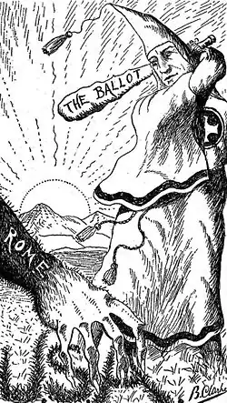 Sur le plan politique, le découpage électoral a été conçu à l'avantage des protestants en Irlande du Nord. Les six comtés qui constituent l'Irlande du Nord sont découpés à sa fondation de manière à permettre la victoire des partis unionistes, même dans les zones où les catholiques sont majoritaires[10]. Trois types d'élections avaient cours en Irlande du Nord avant les réformes des années 1970 : un système presque démocratique pour celles du Parlement du Royaume-Uni, un système censitaire pour les élections locales et un système où seuls avaient le droit de vote les propriétaires d'entreprise et leurs épouses pour celles du Parlement d'Irlande du Nord[11]. Par exemple, à Derry, 10 000 catholiques ne sont représentés que par huit sièges au conseil municipal, tandis que 7 500 protestants en possèdent 12[12].