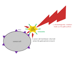 En tant qu'approche pour la thérapie photothermique, les nanocorps se liant à l'antigène HER2, qui est surexprimé dans les cellules cancéreuses du sein et de l'ovaire, ont été conjugués à des nanoparticules d'or ramifiées (voir figure). Les cellules tumorales ont été détruites par photothermie à l'aide d'un laser dans un environnement de test[46].