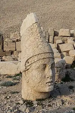- ↑ Sur le sanctuaire du Nemroud Dagh, voir D.H. Sanders (éd.), Nemrud Daǧi. The Hierothesion of Antiochus I of Commagene. Vol. I : Text ; vol. II : Illustrations, Winona Lake, 1996. Sur Arsaméia du Nymphaios, voir F.K. Dörner et Th. Goell, Arsameia am Nymphaios : Die Ausgrabungen im Hierothesion des Mithridates Kallinikos von 1953-1956, Istanbuler Forschungen 23, Berlin, 1963 ; W. Hoepfner, Arsameia am Nymphaios II : Das Hierothesion des Königs Mithridates I. Kallinikos von Kommagene nach den Ausgrabungen von 1963 bis 1967, Istanbuler Forschungen 33, Tübingen, 1983. Sur les fouilles récentes menées en Commagène, voir J. Wagner (éd.), Gottkönige am Euphrat. Neue Ausgrabungen und Forschungen in Kommagene, Mayence, 2000. Les inscriptions cultuelles sont étudiées dans deux ouvrages fondamentaux : H. Dörrie, Der Königskult des Antiochos von Kommagene im Lichte neuer Inschriften-Funde, Göttingen, 1964 ; H. Waldmann, Die Kommagenischen Kultreformen unter König Mithradates I. Kallinikos und seinem Sohne Antiochos I, EPRO, Leyde, 1973 ; sur la théocratie d'Antiochos, voir C.-G. Schwentzel, « Théocraties et rois clients : Antiochos Ier de Commagène et Hérode le Grand », Dialogues d’Histoire Ancienne n°36/1, 2010, p. 119-136.
