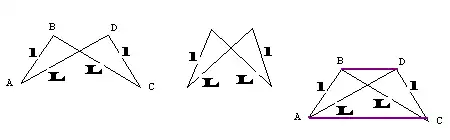 Si les sommets A, B, C et D sont articulés, la figure varie, mais le produit AC.BD reste constant, égal à AD2 – AB2.