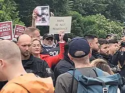 Karoline Preisler (FDP) manifeste à Berlin sous forte protection policière en solidarité avec les femmes violées le 7 octobre 2023 (2024). Elle est régulièrement menacée par des personnes haineuses envers Israël[59],[60].