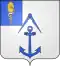 D'argent à une ancre surmonté d'un compas ouvert vers la pointe, le tout d'azur ; au canton des Comtes Sénateurs brochant[1]. Livrées : blanc, bleu. |