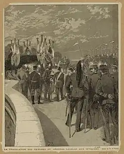 - ↑ « À L'Hôtel des Invalides : Un hommage de la République, Décret présidentiel : Translation des restes du général Lasalle », Le Matin, no 2774, (lire en ligne, consulté le ).