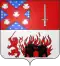 Coupé au premier parti à dextre d'azur au sautoir cousu de gueules, chargé de cinq coquilles d'argent, et cantonné de vingt étoiles du même, six en chef, six en pointe, quatre sur chaque flanc : à senestre des barons tirés de l'armée ; au deuxième d'argent à la forteresse en ruines de sable, ajourée, ouverte et enflammée de gueules adextrée d'un lion rampant de gueules, tenant de la dextre une épée du même[2].