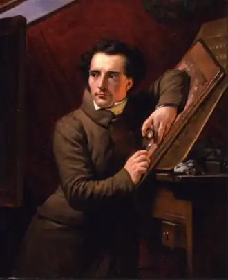 - ↑ Explication des ouvrages de peinture, sculpture, architecture, gravure et lithographie des artistes vivants exposés au Musée national du Louvre le 15 mars 1848, Vinchon, imprimeur du Musée national du Louvre, 1848.
