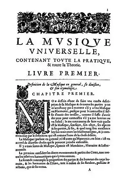 La Musique universelle, contenant toute la pratique, et toute la théorie. Paris : Robert III Ballard, vers 1657-1658. 2°, 208 p. RISM B-VI p. 241, Guillo 2003 n° 1658-F. Bruxelles BR : Fétis 5357 C RP. Prov. Sébastien de Brossard, avec au début une note historique de François-Joseph Fétis. Paris Maz. : Rés D 4727. Prov. Abbaye de Saint-Germain-des-Prés. Les deux seuls exemplaires connus ne contiennent que les pages 1–208, c'est-à-dire les livres I et II complets, et les premiers chapitres du livre III. Numérisé sur IMSLP