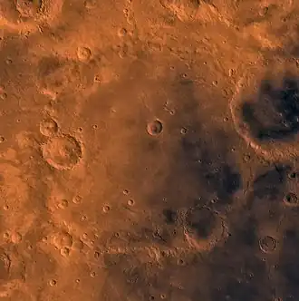 - ↑ (en) Union astronomique internationale, « Planetary Names: Crater, craters: Antoniadi on Mars », sur planetarynames.wr.usgs.gov, (consulté le )