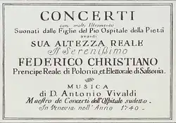 À la même époque, le jeune homme avait été choisi comme maître de violon par les autorités du Pio Ospedale della Pietà (hospice, orphelinat et conservatoire de musique de haut niveau) et engagé à cet effet en août 1703[T 8], aux appointements annuels de 60 ducats[C 6]. En italien, le mot Pietà ne signifie pas Piété mais Pitié.