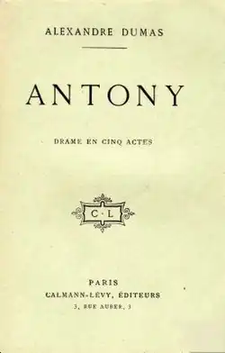 Antony est un drame en cinq actes écrit en prose par Alexandre Dumas, dont la première eut lieu à la Porte Saint-Martin le .