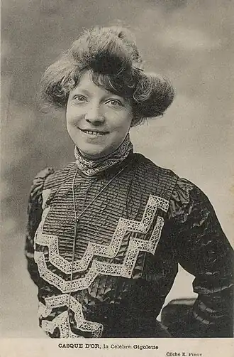 La personnalité emblématique de Casque d'Or illustre largement la place des femmes dans l'univers apache. Elle a été immortalisée par Simone Signoret dans le film Casque d'Or de Jacques Becker. Pour Michelle Perrot, « la question des filles est au cœur de la violence apache »[10]. Objet de la violence des apaches (lorsqu'ils se battent pour elle), la femme apache constitue également une marchandise, puisqu'elle est souvent prostituée – en cela, elle peut également subir la violence du souteneur ou être remplacée par de nouvelles arrivantes. Elle peut, également, parfois être actrice de la violence, surtout dans le cadre de disputes entre prostituées se soldant à coups de couteau, à coups de revolvers, voire de vitriol[38].