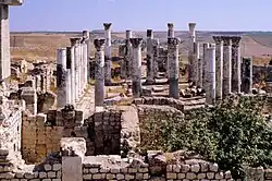 Dans le secteur de l'Agora et potentiellement du forum, des chapiteaux doriques ont été retrouvés, mais également des autels dédiés à Hygie et Asclépios et probablement liés à une stoa et l'agora serait associé justement à cet endroit puisqu'il y a eu une inscription honorifique retrouvée non loin de l'endroit où étaient les autels et les chapiteaux. Les fûts de colonnes retrouvés permettent d'estimer la hauteur à 6 m. Grâce à la forme des chapiteaux, le monument a été daté au Ier siècle av. J.-C.