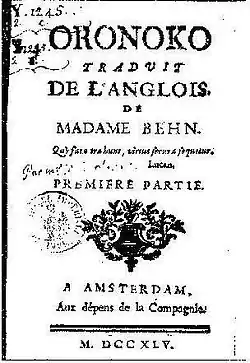 Son roman intitulé Oroonoko (1688) est peut-être la première fiction en Occident qui traite du problème de la traite et de l'esclavage. Traduit Il a inspiré des auteurs comme l'Abbé Prévost, Voltaire et Victor Hugo.