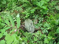 Cette plante herbacée vivace mesure jusqu'à 50 cm de hauteur. Sa partie souterraine comprend un corme d'environ 2 cm de diamètre, à partir duquel se développe en automne une feuille unique. Cette dernière est de forme elliptique à ovale et a un aspect fripé ; elle mesure une dizaine de centimètres de long pour 4 à 8 cm de large[1]. De longues nervures blanches (parfois teintées de vert et/ou de pourpre) parallèles parcourent la feuille, lui donnant un aspect vert pâle. Cette feuille persiste durant l'hiver, même sous la neige, puis meurt à la fin du printemps.