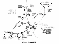 - Étudier la surface et la géologie du site de Fra Mauro et collecter une quarantaine de kilogrammes d'échantillons de roches, composés de roches individuelles, de fragments de roches et poussière en fournissant le contexte (photos) ;
