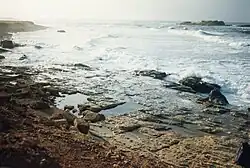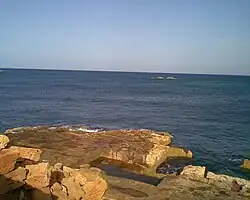La lente subsidence qui touche le littoral cyrénéen a entrainé l'immersion partielle de la cité, dont la partie portuaire se trouve au XXe siècle engloutie sous plusieurs mètres d'eau, jusqu'à 3,8 mètres de profondeur en certains points[1]. Les plongeurs ont observé sur les blocs de structure des quais des traces de colonies de balanes, petits crustacés qui vivent au niveau de l'alternance d'immersion et de submersion soit au niveau moyen des eaux. En plusieurs points du site, ces traces ont été observées à 3,8 mètres de profondeur, ce qui donne une idée du mouvement de subsidence depuis l'antiquité. Ce mouvement s'est visiblement ralenti au cours des deux derniers siècles, car le profil actuel du rivage est identique à quelques détails près à celui dessiné sur la carte de 1822 des frères Beechey[2].