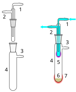 La forme de la surface refroidie est souvent un doigt dit froid. Si l'opération est un procédé discontinu, la matière sublimée peut être collectée à partir de la surface refroidie une fois que le chauffage et le vide sont arrêtés.