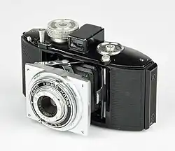 1940. Faux reflex (l'objectif de visée ne permet pas la mise au point) cet appareil au look flatteur sera vendu en grande quantité aux États-Unis et sera aussi produit en Angleterre à partir de 1946[3],[20].