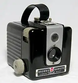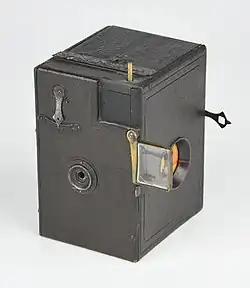 1900. Brownie fut le nom d'une longue série d'appareils photo populaires produits par Eastman Kodak. Le Brownie popularisa le concept de la photographie bon marché et de la prise de vue instantanée. Le premier Brownie apparait en février 1900[12] : c'était un modèle très simple avec un simple ménisque comme objectif, au format 6 x 6 cm. Il était vendu au prix de 10 dollars[2],[3],[4],[5],[9].