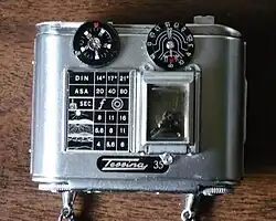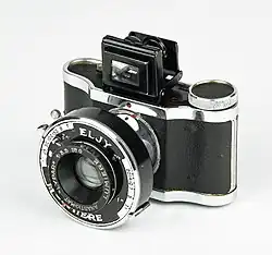 1932. Conçu par Fritz Kaftanski c'est un appareil miniature donnant des images de 13 x 18 mm sur une pellicule de 16 mm. Comme pour le Lumière Eljy, le petit boitier faisait paraitre l'obturateur immense [1],[2],[3].
