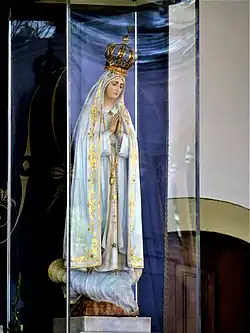 • l'Armée bleue de Notre-Dame de Fátima, fondée par des fidèles à la suite des apparitions, elle est approuvée par le pape Pie XII en 1947[35]. Cette association est devenue la plus grande société mariale (en) du monde avec plus de 25 millions de membres inscrits.