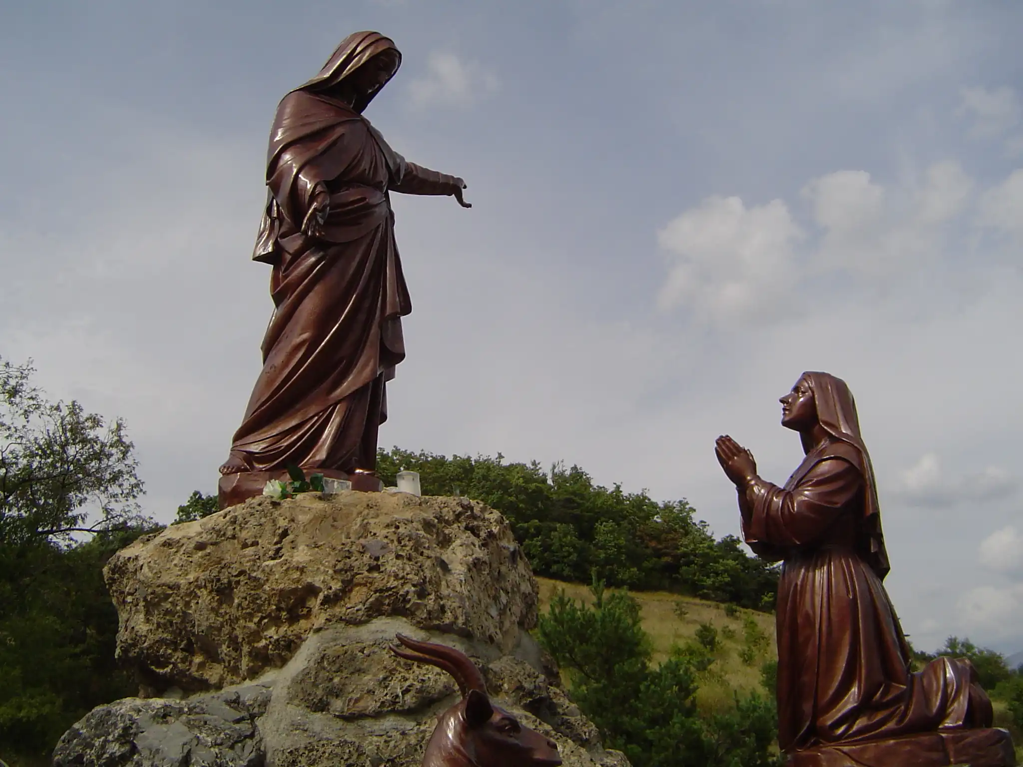 Statue de Notre-Dame de La Salette avec ses voyants.