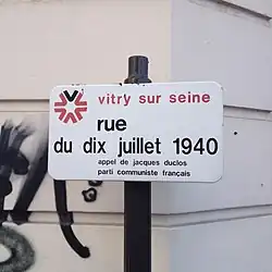 - 1 2 « Commémoration de l'appel du... 10 juillet 1940 », sur leparisien.fr, (consulté le ).