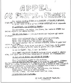 L'Appel du désigne un tract de Charles Tillon diffusé à Bordeaux avec la complicité de certains kiosquiers communistes. Les tracts rapportant l'appel du dirigeant du Parti communiste étaient encartés dans des journaux bordelais comme La France ou La Petite Gironde.