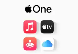 Apple One est un abonnement proposé par Apple regroupant les principaux services payants de l'entreprise[1] : Apple Music, Apple Arcade, Apple TV+, iCloud, et Fitness+ dans sa version française ou encore News+ dans certains pays.
