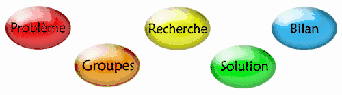 - Retour sur la situation problème : De retour en grand groupe, le vocabulaire nouveau est défini, les objectifs d'apprentissages sont revus et les étudiants parlent de ce qu'ils ont trouvé. Des notes peuvent être prises par le scribe et retransmises à tous par la suite : ce sera les notes de cours.