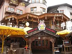 Le principe est surtout populaire dans les Alpes, où les skieurs font souvent une pause au bar après leur dernière descente[2]. Aux États-Unis, le terme est utilisé plus largement pour décrire l'atmosphère des stations de ski et de la culture de ski, l'architecture et la décoration à thème et le style de vie orienté vers le ski en général.