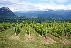 Vignes à Apremont avec vue sur la cluse de Chambéry (juin 2009).