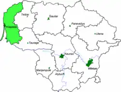 - (en) Tableau : superficie, population et densité sur le site Statistikos Departamentas du gouvernement de la République de Lituanie.
