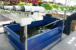 L'aquaponie est un système de production alimentaire durable qui unit la culture de plantes et l'élevage de poissons. Les plantes sont parfois cultivées sur des billes d'argile, et peuvent être irriguées en circuit fermé par de l'eau provenant d'un aquarium où sont élevés les poissons. Des bactéries aérobies présentes dans le substrat transforment l'ammoniaque contenue dans leurs déjections en nutriments directement assimilables par la végétation. L'eau, ainsi purifiée, retourne ensuite dans l'aquarium.