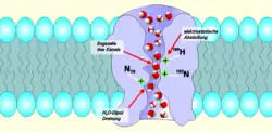 - ↑ De Groot B. L., Grubmüller, The dynamics and energetics of water permeation and proton exclusion in aquaporins. Current Opinion in Structural Biology. 2005, Vol.15, p. 176-183.