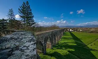 L'eau était ensuite acheminée vers le nord par le biais de conduits couverts en pierre jusqu'au temple-réservoir de San Concordio[1] ( 43° 50′ 09″ N, 10° 30′ 32″ E ), juste à l'extérieur de l'enceinte fortifiée de Lucques. Les arches ont été principalement construites avec des briques.