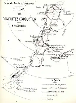 Plan d'adduction d'eau de Tunis incluant l'aqueduc (1928).